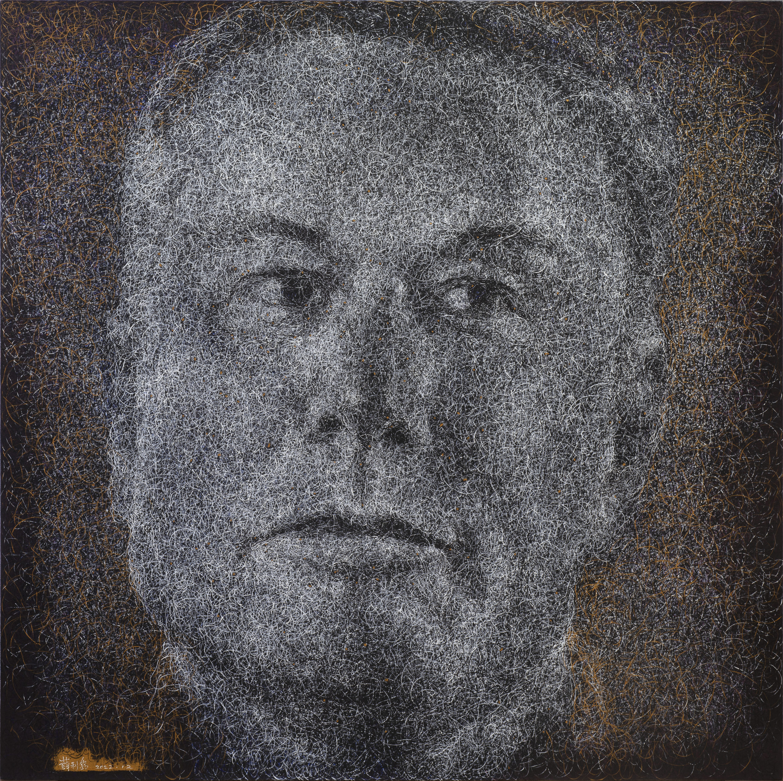 In Xue Ming’s art piece, he skillfully employs meticulous brushstrokes to layer circles, intricately depicting influential individuals such as Elon Musk and Steve Jobs. These circles form an organic whole, symbolizing the intricate relationship between individuals and the collective in contemporary society.